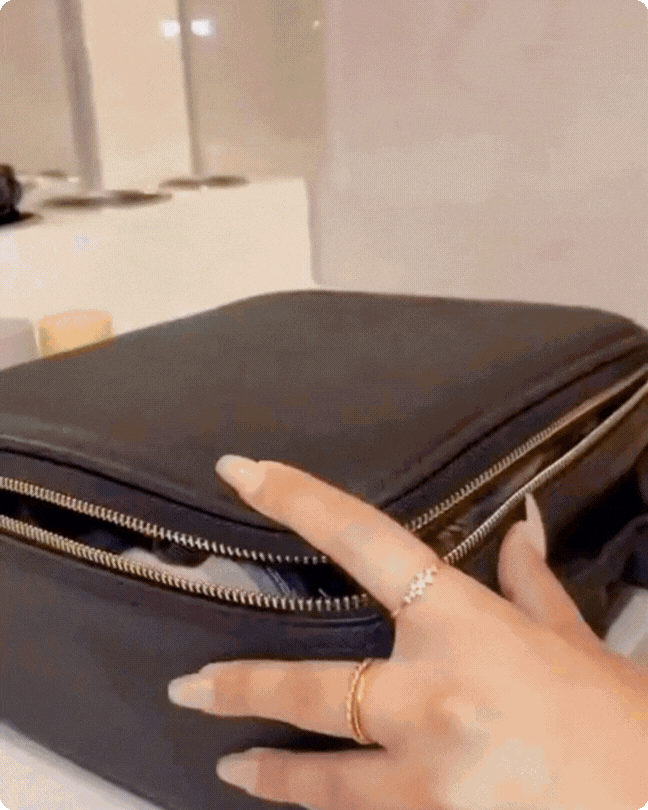 Incluye compartimentos ajustables para organizar brochas, labiales y todo tu maquillaje sin desorden.
