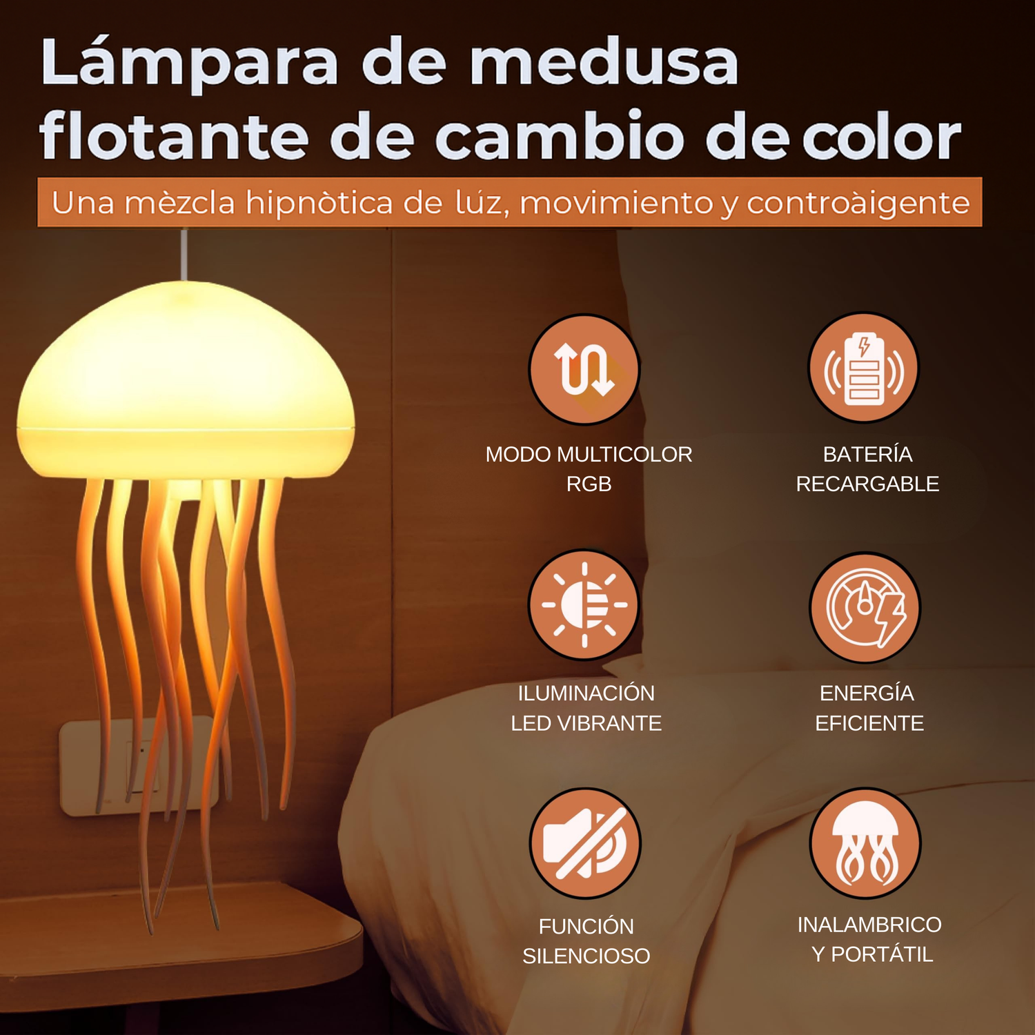 Luces LED de 7 colores cambiantes: La lámpara ofrece un efecto de iluminación dinámica que transforma cualquier habitación, creando un ambiente relajante y atractivo.