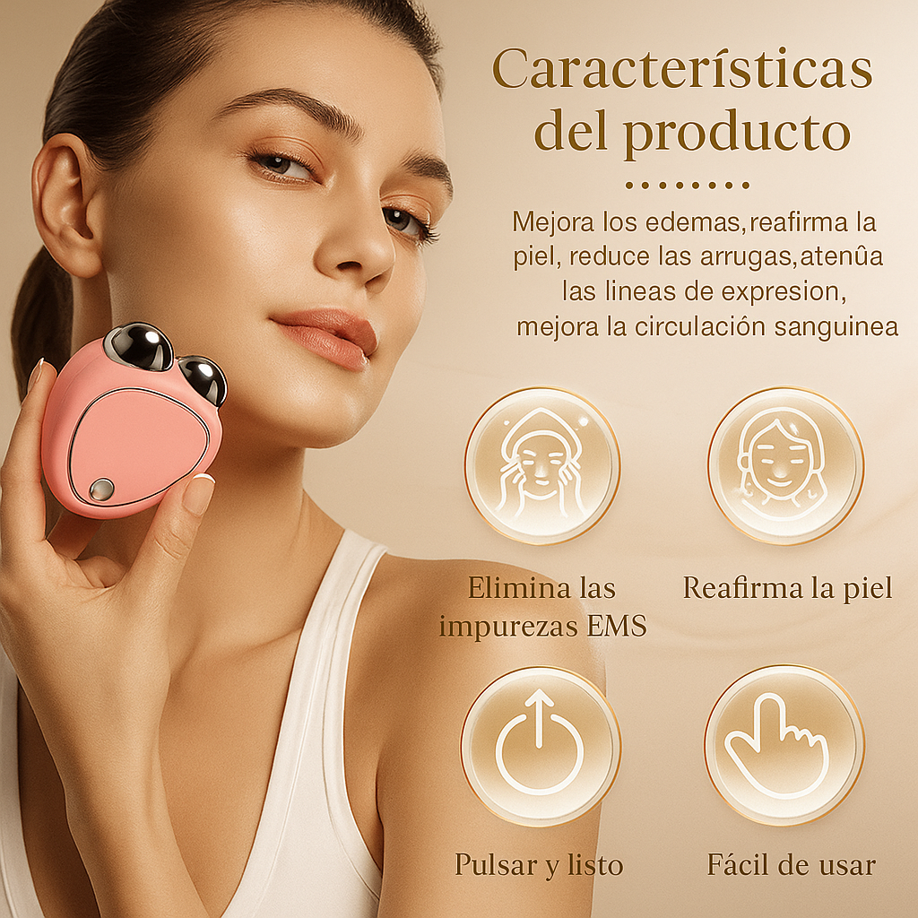 Un diseño moderno y ergonómico que se ajusta perfectamente a tu rostro. Este masajeador facial combina estilo y funcionalidad para ofrecerte una experiencia de cuidado personal única, ayudando a relajar los músculos faciales y mejorar la textura de tu piel.